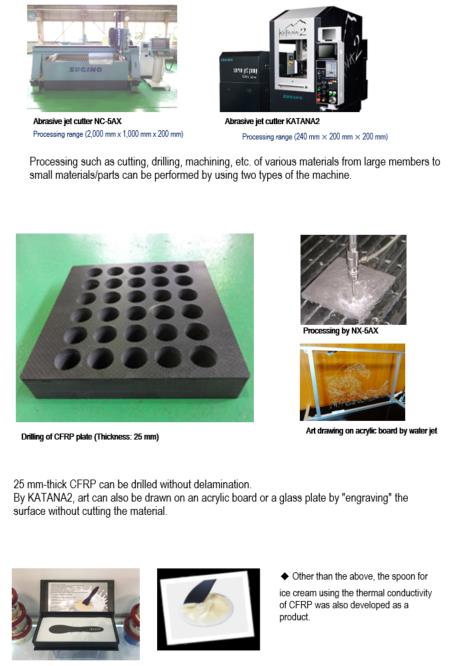 - The spoon for ice cream by processing CFRP called "WARM TECH SPOON" was developed and commercialized.