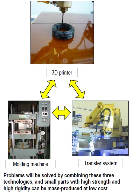 ◇Mass production system that combines a 3D printer and a molding machine