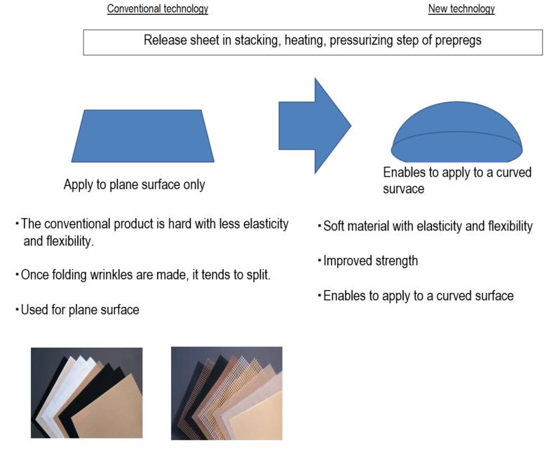 Example of Application Release sheet in stacking, heating, pressurizing to set hardened the prepreg