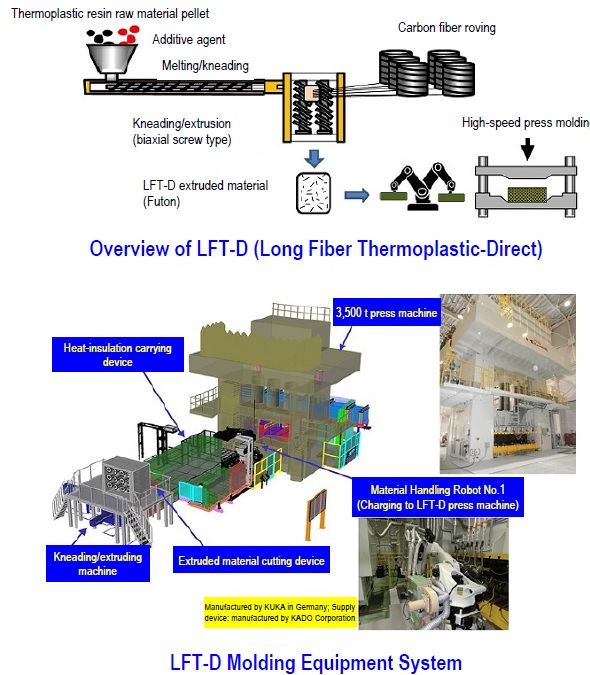 The LFT-D press molding can be made at a high speed and low cost, and offers adhesion capability.