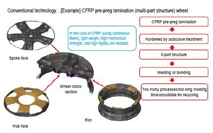 ・Significant shortening of molding time in comparison with carbon fiber reinforced thermoplastic composite (CFRP ) wheels