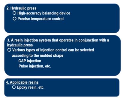 〇 Providing a series of molding systems from material supply to resin injection, press molding and material handling