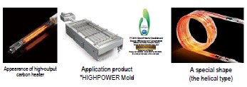 ・In the fields, such as heating of metal mold, where only gas was used so far, this carbon heater enables a rise in temperature.
