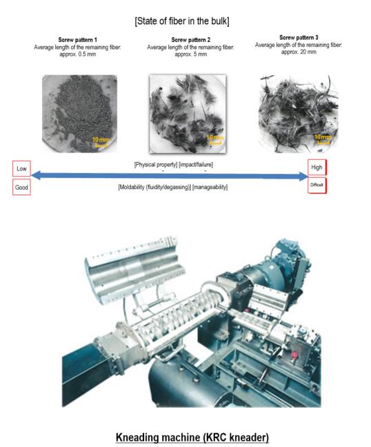 〇 We provide a self-cleaning type kneading machine (KRC kneader) with a low L/D structure, and a high-accuracy, high-cycle hydraulic press (manufactured by WICKERT) which adapts to thermoplastic composite molding. We propose devices and a process that are compact and excel in maintainability.